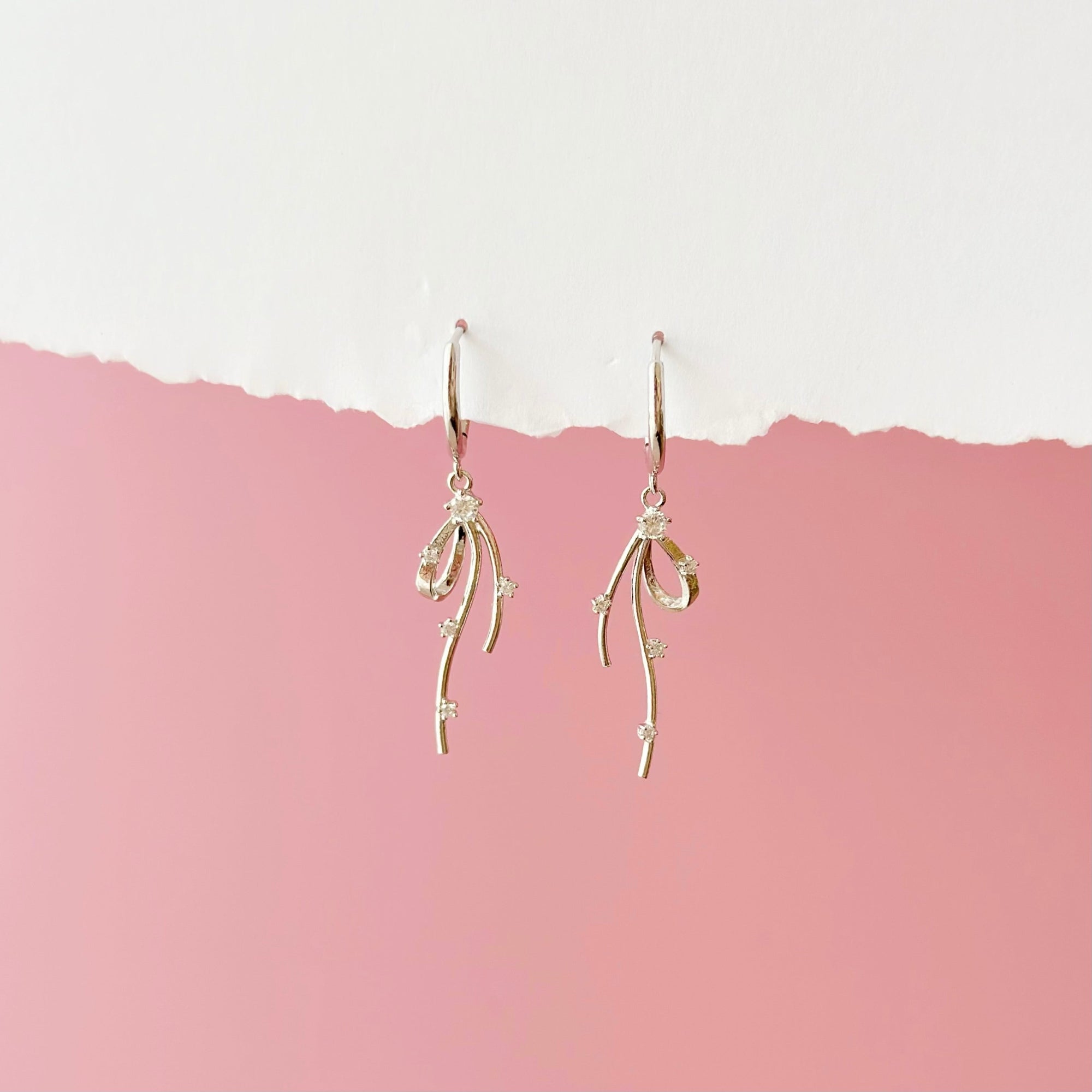 Silver Promise You Ribbon Hoop Earrings