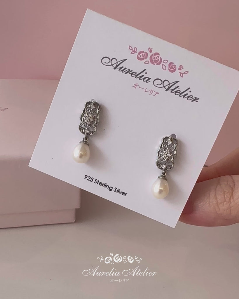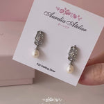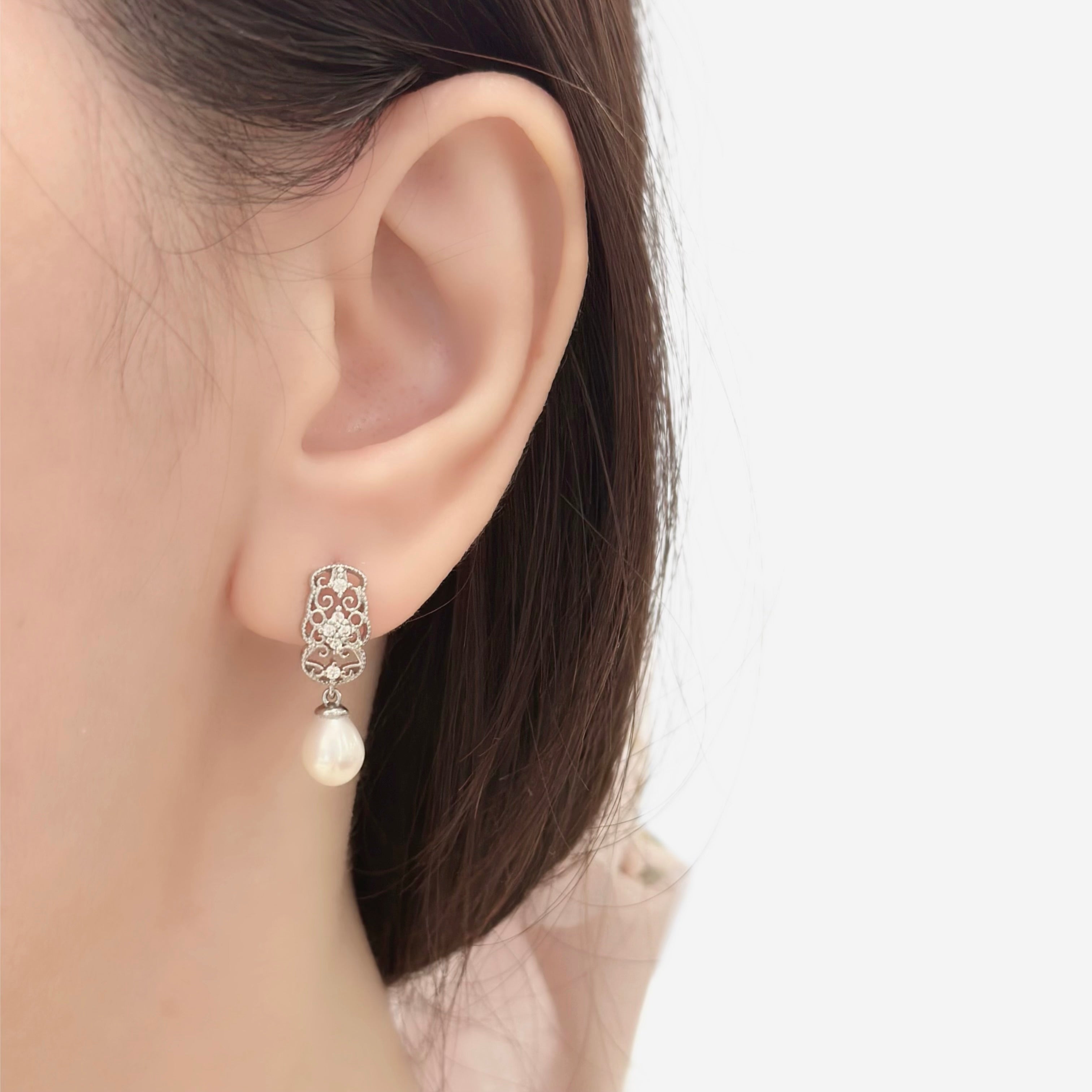 Delicately crafted with intricate openwork detailing, these earrings feature a graceful dangling pearl that catches the light with every move. The airy design blends sophistication with subtle charm, making them perfect for both everyday elegance and special occasions.