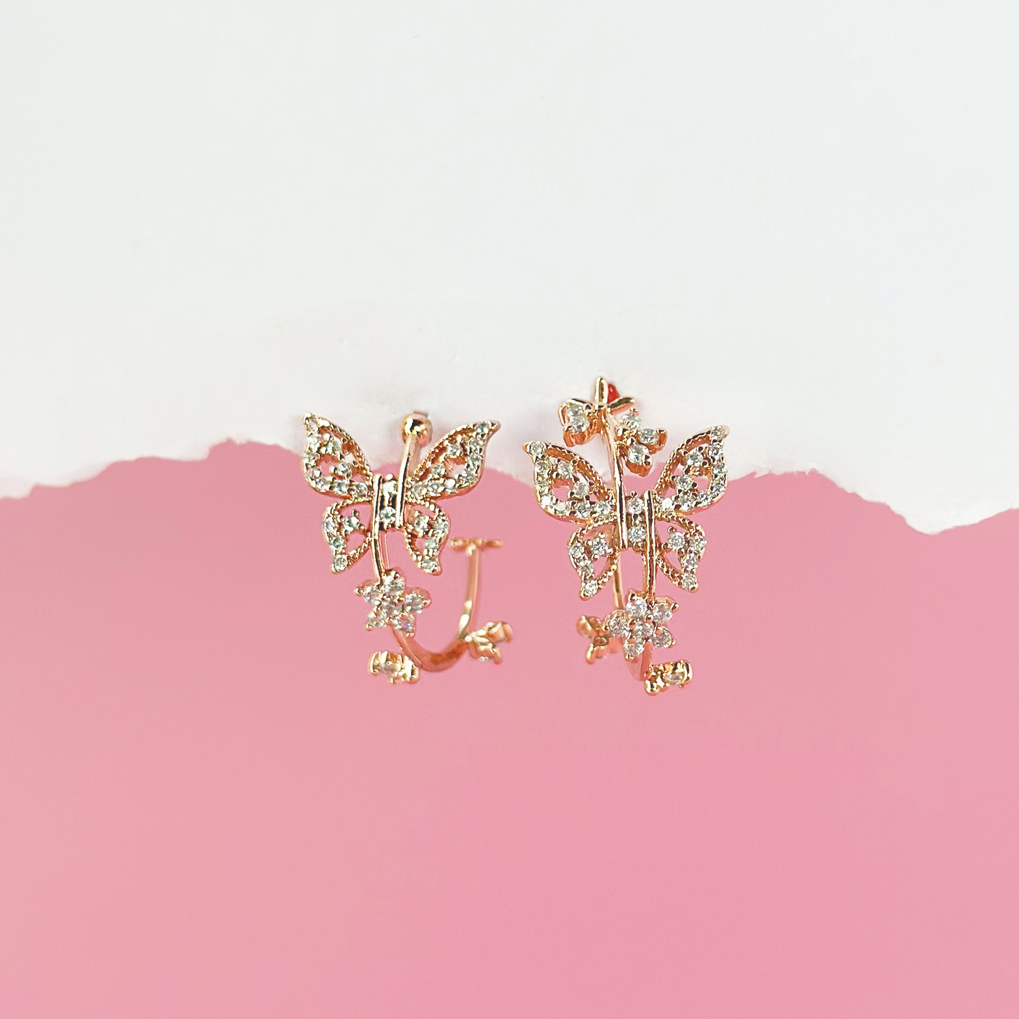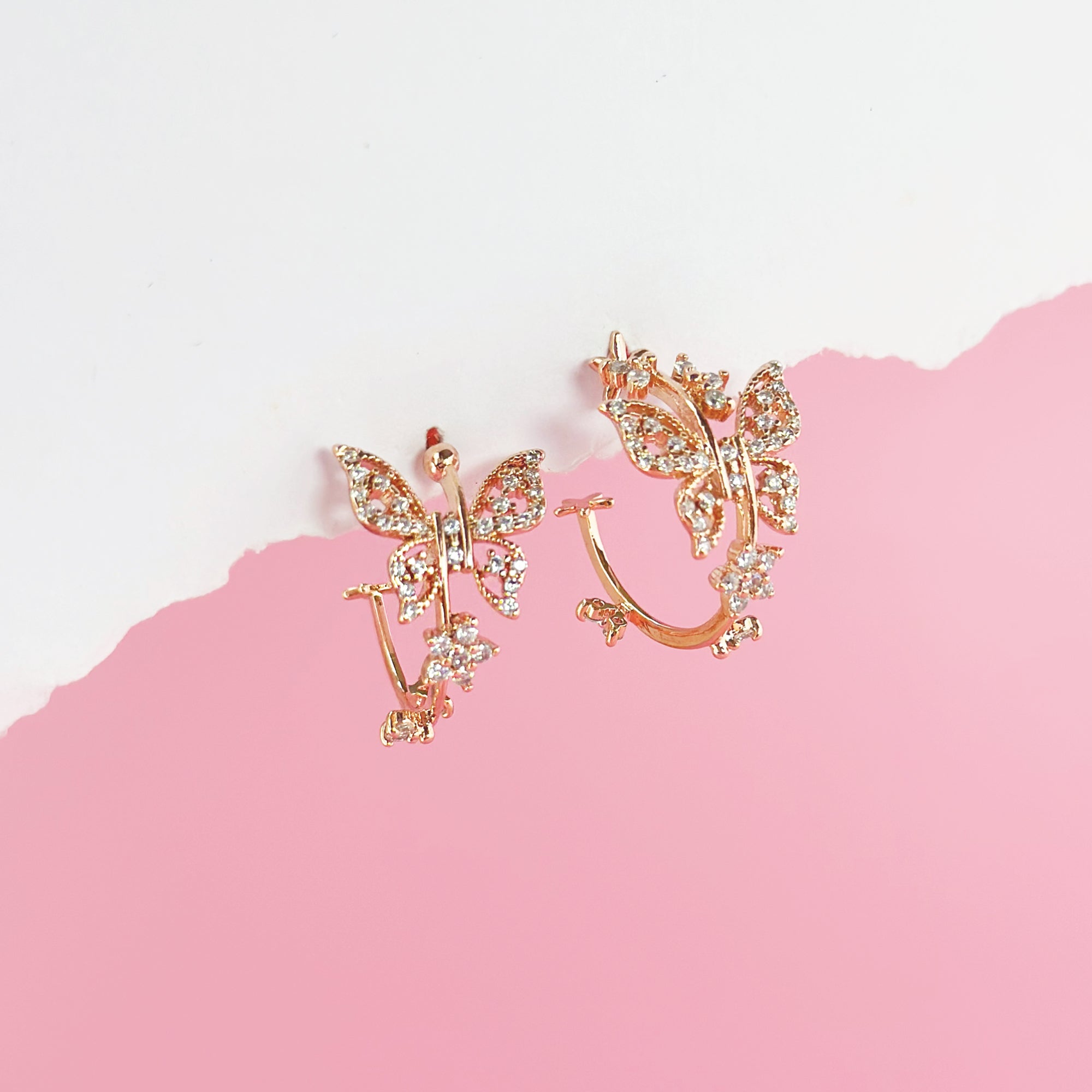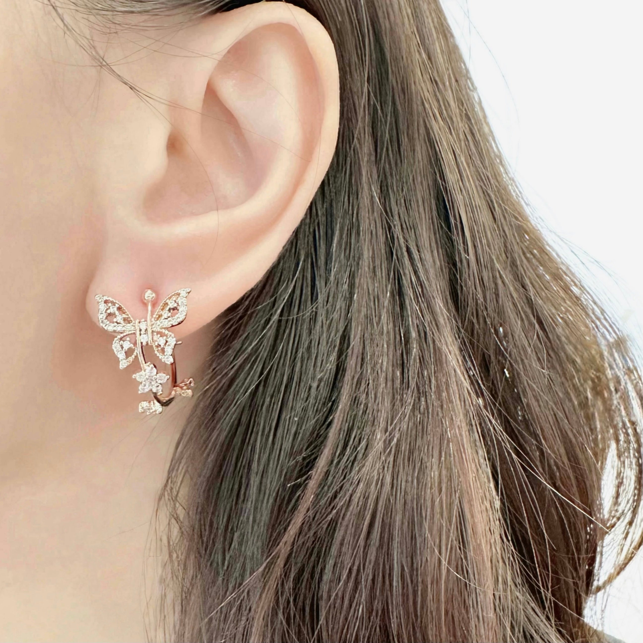 Rose Gold Moonlight Butterfly Hoop Earrings