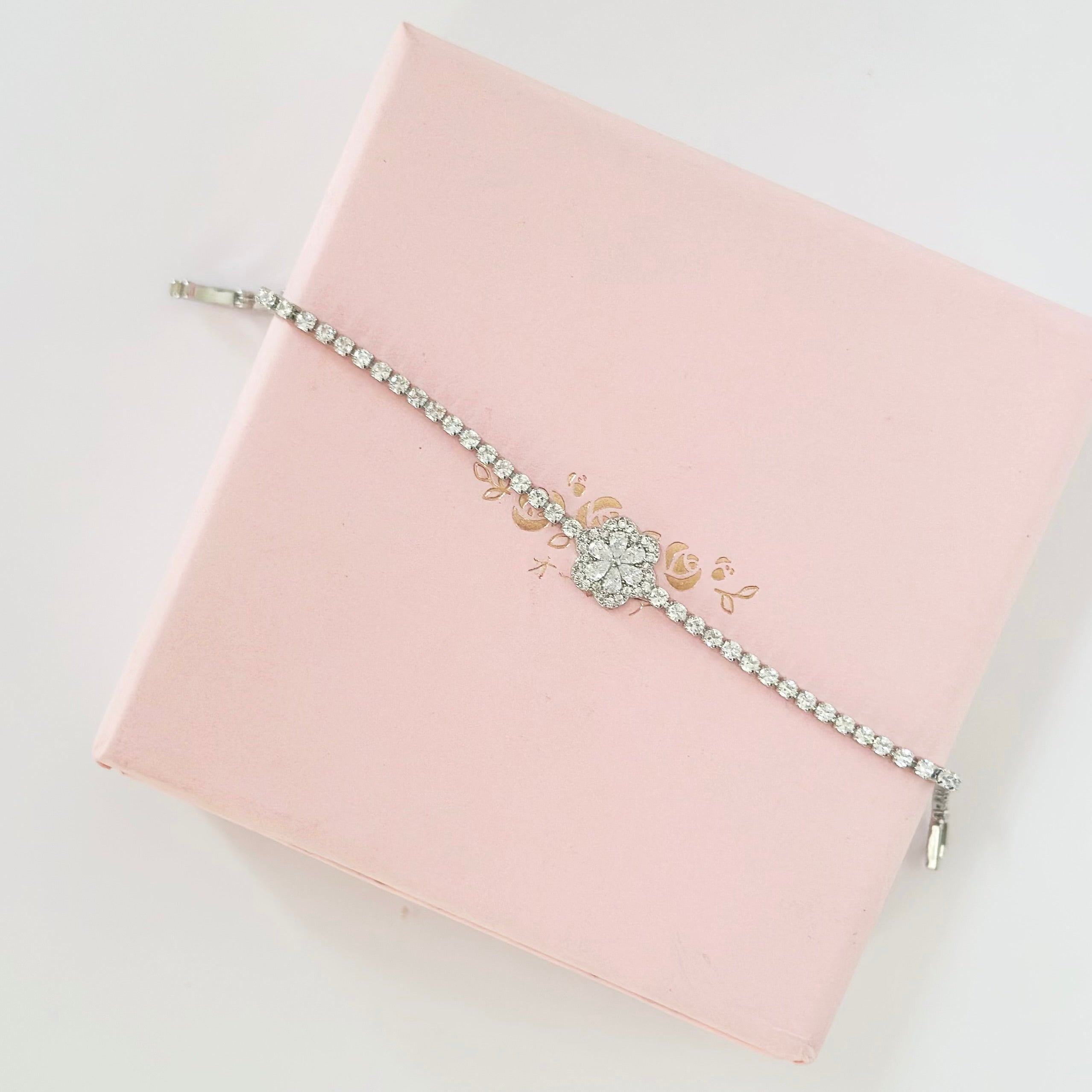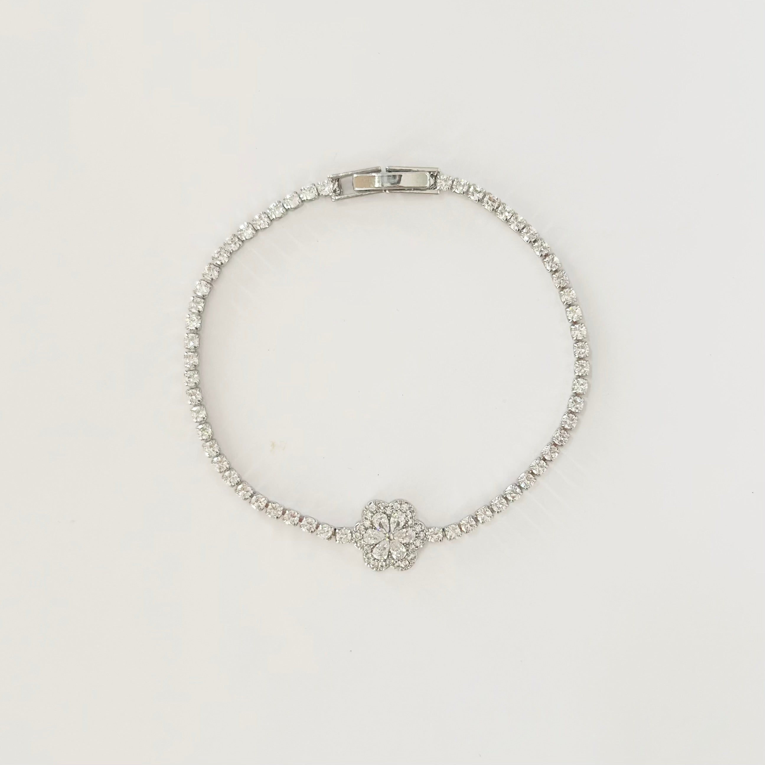 Silver Blossom Heart Tennis Bracelet