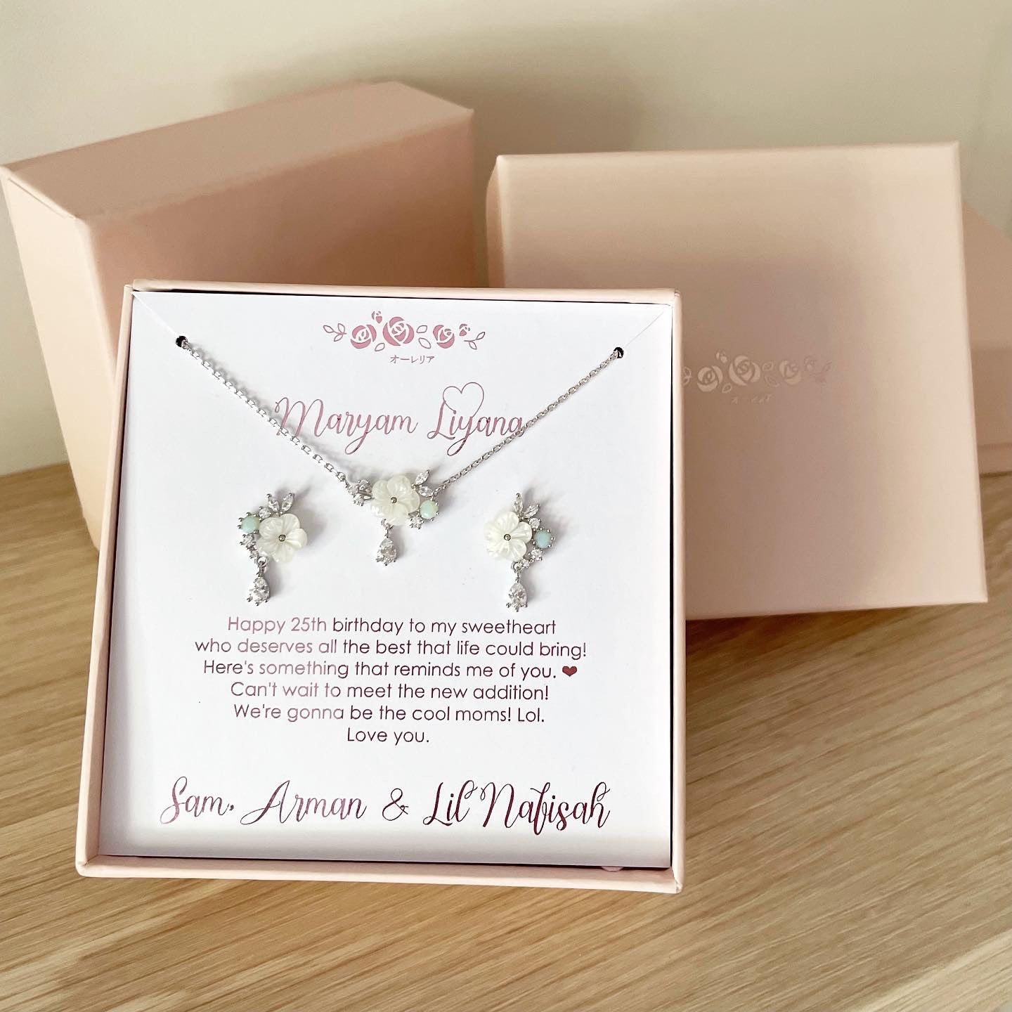 Add on your preferred jewellery into cart, we will put the jewellery on your Personalised Message Card. Happy choosing!